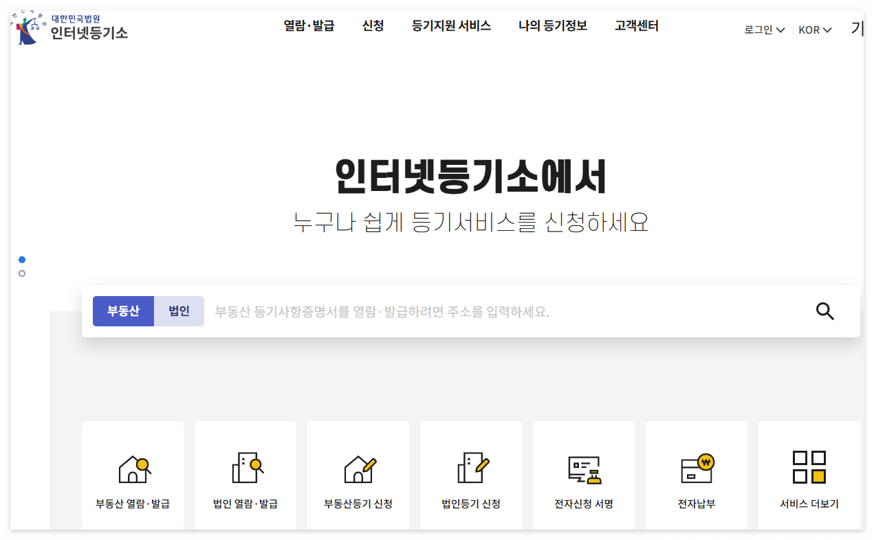 | 건물 등기사항 전부증명서 | 구입 주택 권리사항 확인 | 인터넷등기소 |